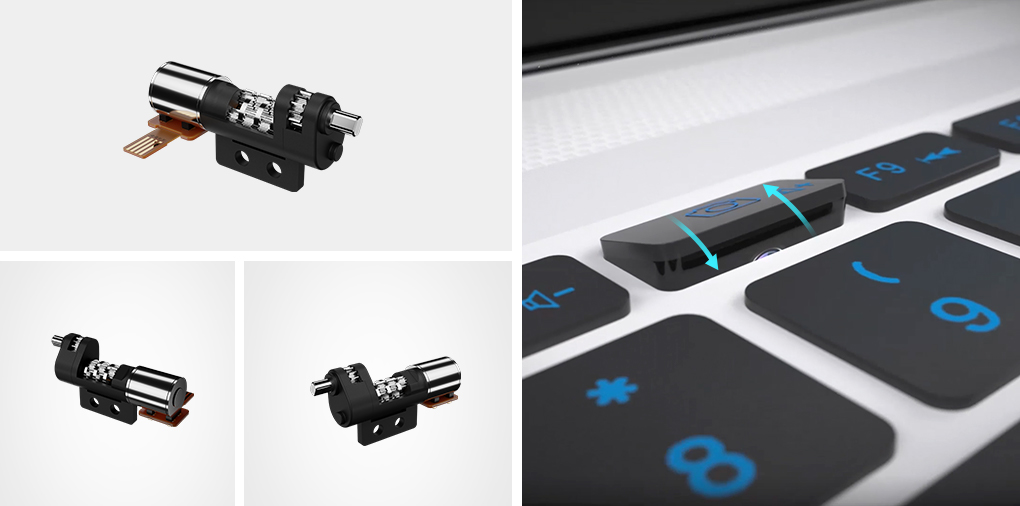 兆威筆記本電腦攝像頭翻轉(zhuǎn)驅(qū)動(dòng)系統(tǒng)采用緊湊的微型驅(qū)動(dòng)結(jié)構(gòu),可在有限的空間內(nèi),輸出較大力矩,滿足廠家追求極致寬屏的需求。